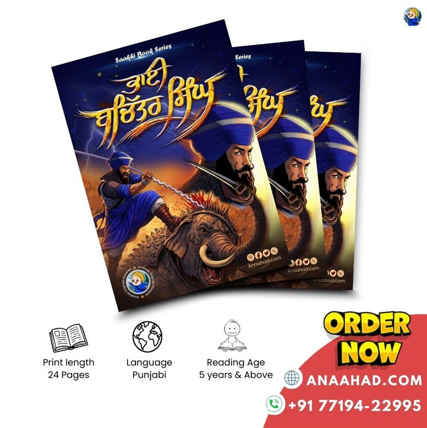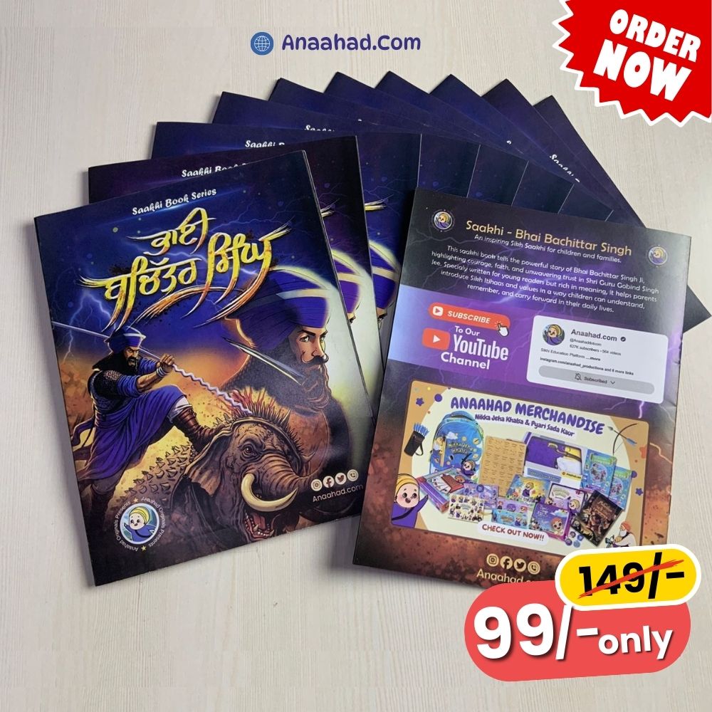 Saakhi Book - Bhai Bachittar Singh Ji is a Punjabi kids Sikh Itihaasik Story book that encourages children to read Punjabi while connecting them with Sikh history and values. Written in simple, easy-to-understand Punjabi Language, the sakhi is brought alive through colorful illustrations that help kids relate to the History and remember it easily. The book also includes fun word games and important Punjabi words with English meanings, making learning interactive and enjoyable while inspiring children to read, learn, and feel proud of their heritage. Perfect for parents who want to nurture Sikhi through meaningful storytelling, this book encourages moral strength, confidence, and a deeper connection to Sikh heritage making it an ideal read for everyday learning, bedtime, or gifting.